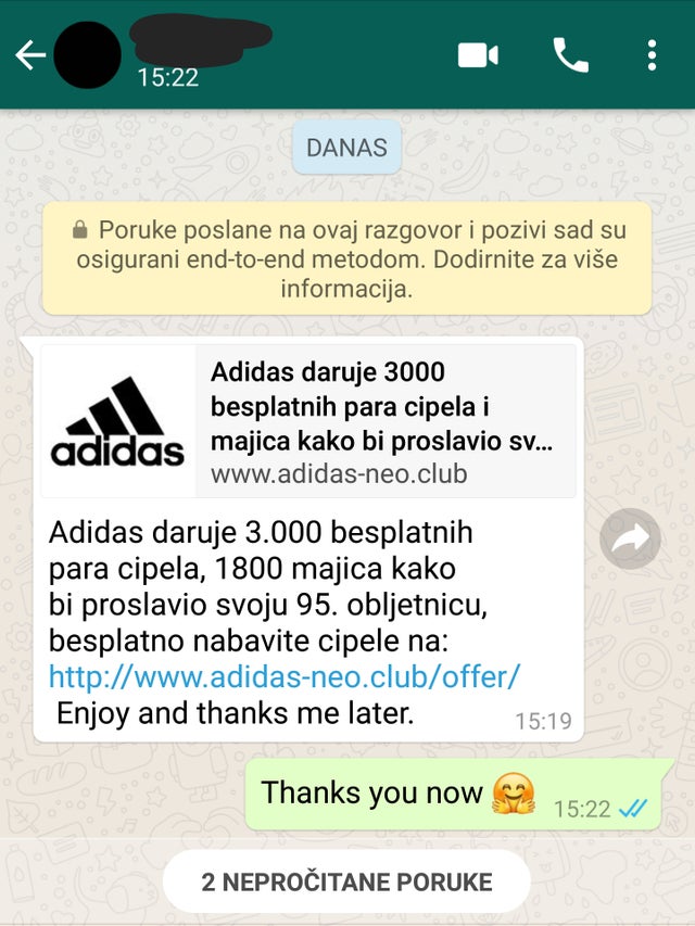Mnogima je posljednjih dana stigla na WhatsAppu poruka: ‘Adidas