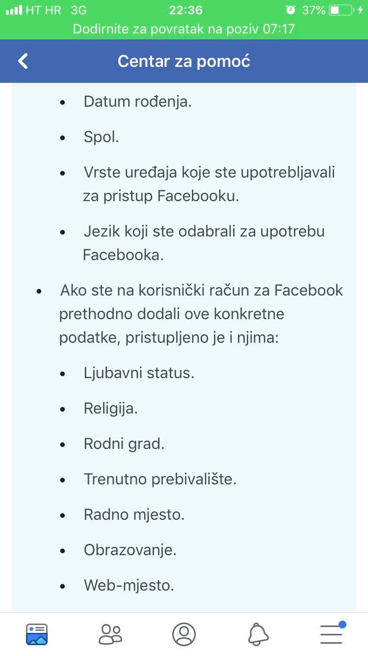 “Jučer oko 23 sata dobila sam obavijest od Facebooka na