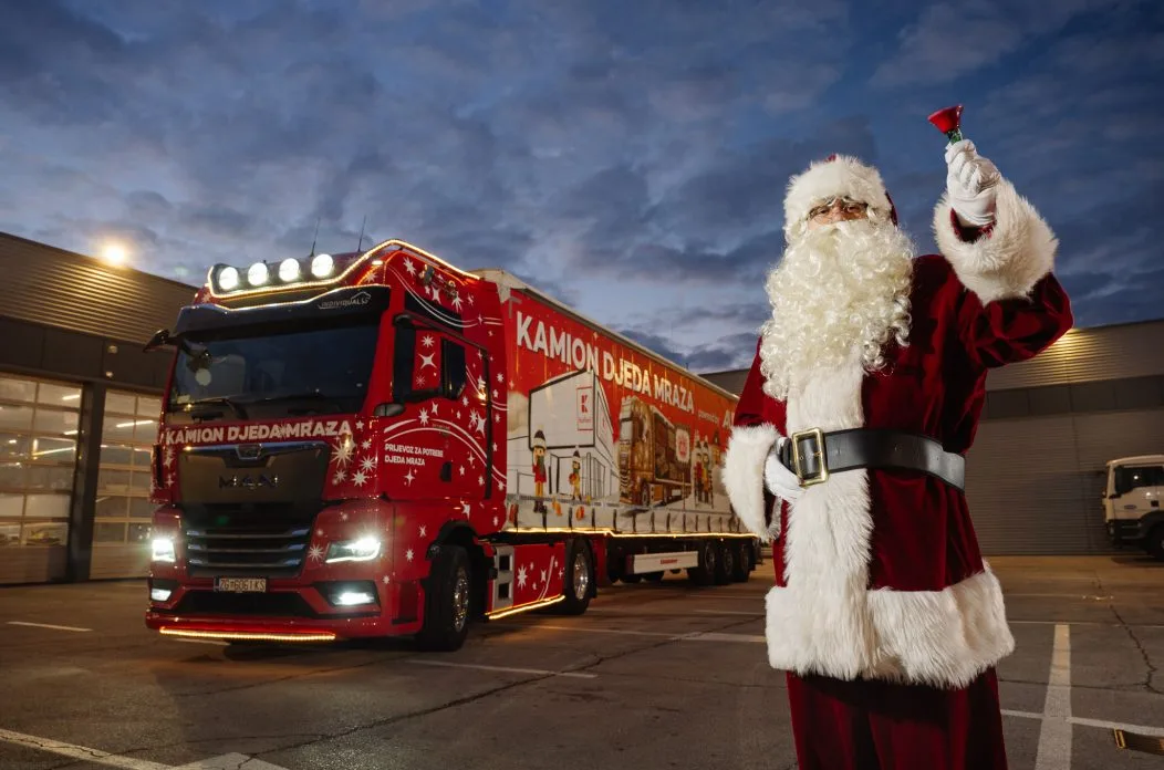 Ovogodišnje “saonice” Djeda Mraza zamijenio je posebno dekorirani MAN TGX s poluprikolicom Kässbohrer, pretvoren u veliku mobilnu božićnu pozornicu, dok sigurnu pratnju na svakoj postaji pruža prateće vozilo Forthing T5 EVO.