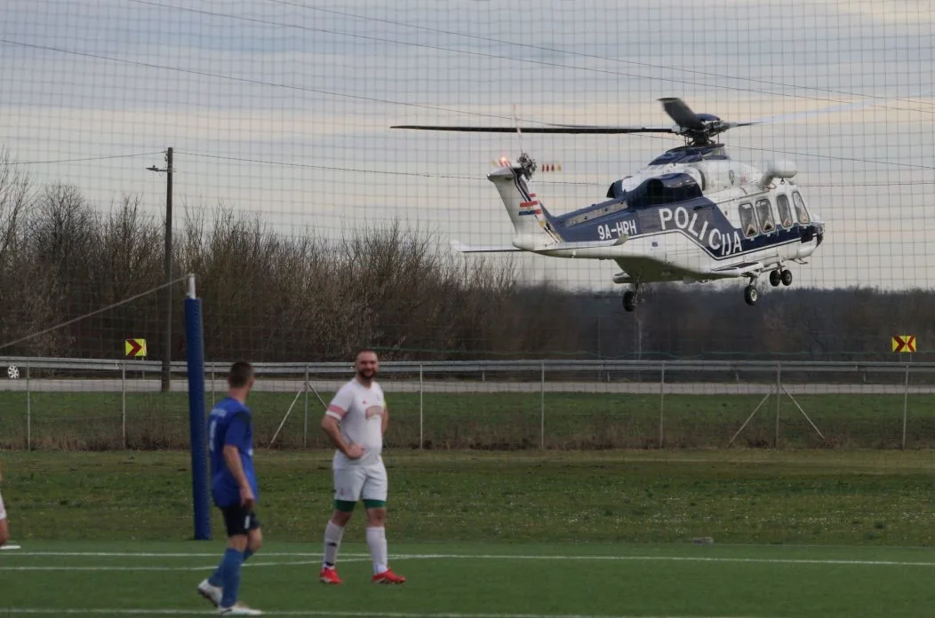 Naime, usred utakmice nad terenom se pojavio policijski helikopter koji je potom i sletio odmah uz teren. Seniorima nije toliko smetao osim što im je, kažu, bilo hladno od “puhanja” uzrokovanog helikopterskom elisom.