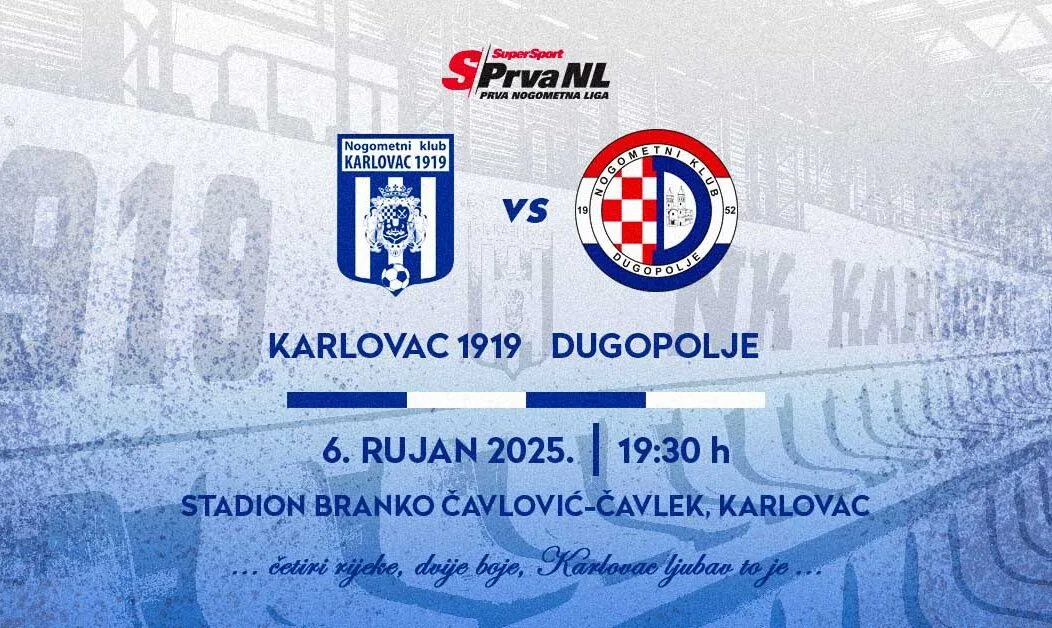 U subotu u 19:30 na Čavlekovom stadionu u četvrtom kolu SuperSport 1. NL dočekuju Dugopolje, ekipu s kojom su se prošle sezone trebali sastati u kvalifikacijama za ulazak u ovaj rang natjecanja, ali kako je došlo do suspenzije Šibenika tih utakmica na kraju nije bilo, a Karlovčani i Dugopoljci snage će napokon odmjeriti ove subote.