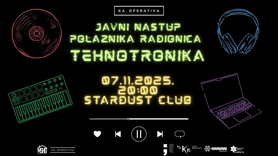 U petak, 7. studenog, u Stardust clubu s početkom u 20:00 sati, održat će se završni javni nastup polaznika DJ radionica i radionica glazbene produkcije organiziranih u SU KAoperativa.
