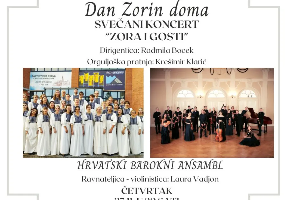Obilježit će ga tradicionalnim svečanim koncertom “Zora i gosti”, a uz Prvo hrvatsko pjevačko društvo Zora pod umjetničkim ravnanjem Radmile Bocek i uz orguljašku pratnju Krešimira Klarića, ovog puta nastupit će Hrvatski barokni ansambl pod vodstvom ravnateljice i violinistice Laure Vadjon.