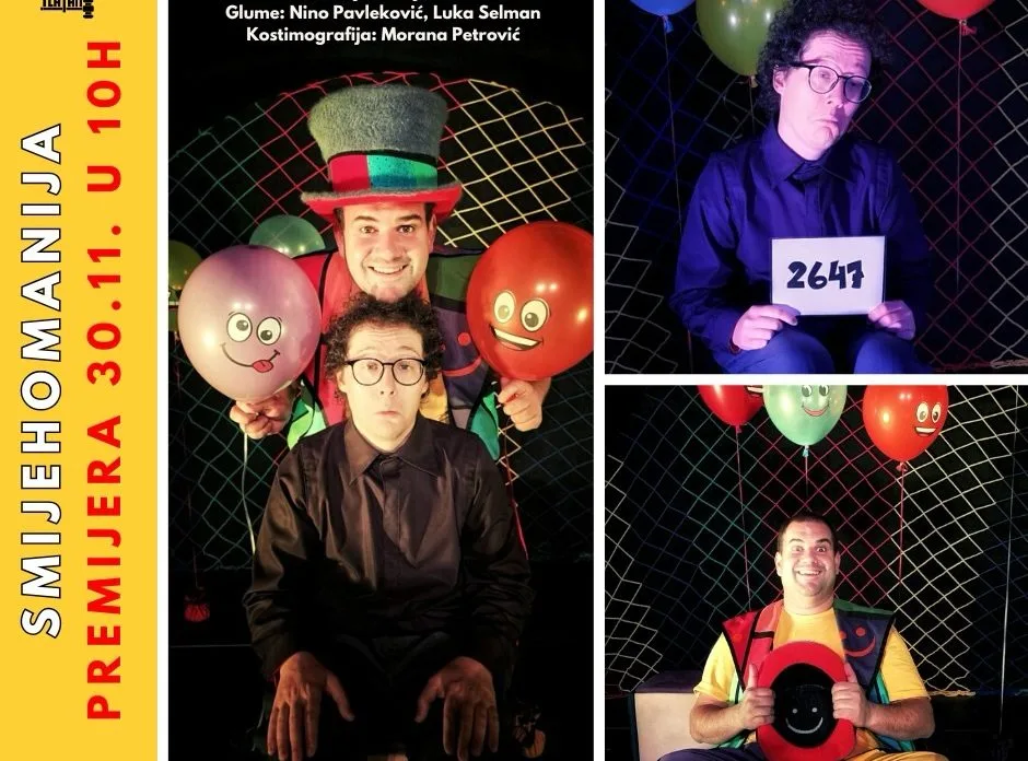 Krećemo “unatrag”, jer Zakon Teatar ove nedjelje ima i svoju novu premijeru! U 10 sati po prvi puta bit će izvedena “Smijehomanija”, koja liječi tugu smijehom. jer Smijehomanija je mjesto gdje se SVI smiju. Srećko, kralj smijeha, zna da smijeh čini čuda, ali može li pomoći Tugomiru da ponovno pronađe svoj?