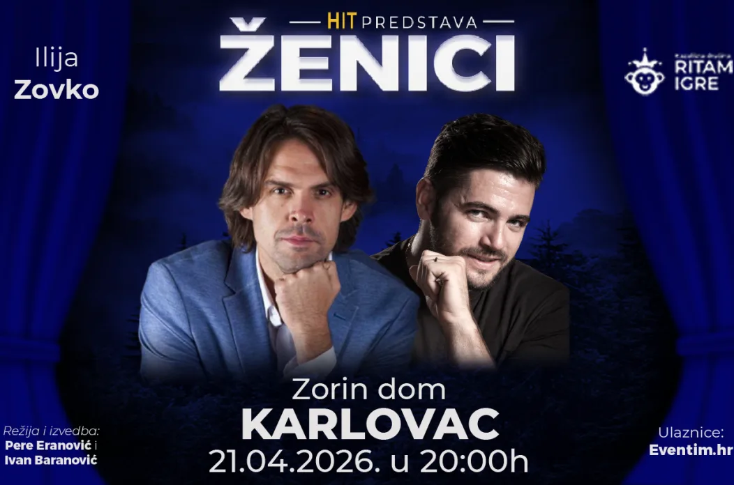 U Zorin domu u utorak 21. travnja gostuje popularna predstava “Ženici”, vesela melodrama koja ima sva obilježja hit predstave prije svega zbog genijalnog i bezvremenskog teksta istaknutog hrvatskog glumca i dramskog pisca Ilije Zovka.