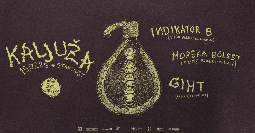 Ljubitelji žestoke glazbe još će jednom doći na svoje u Stardustu, i to u subotu 15. veljače, kada se održava večer pod nazivom "Kaljuža", a na kojoj će nastupiti tri žestoka benda. Iz Zagreba dolaze Indikator B koji sviraju hardcore punk, iz Rijeke bend Morska Bolest koji se predstavlja kao "powerviolence", a još jedan hardcore […]