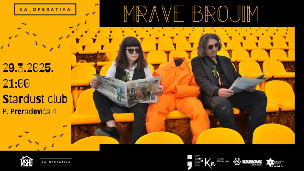 U subotu 29. ožujka još jedno odlično glazbeno događanje u Stardustu - KAoperativa dovodi riječku alter indie poslasticu Mrave brojim! Mrave brojim je grupa iz Rijeke koju je 2018. godine osnovao Zoran Klasić Klas, bivši dugogodišnji član kultnih hrvatskih bendova Grč i Let 3. Uz Klasa (vokal, gitara, programiranje) aktualnu postavu benda čini i Neira […]
