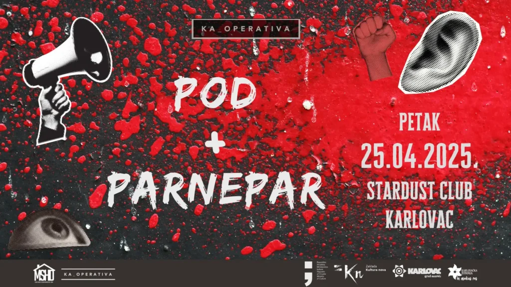 KAoperativa dovodi dva zanimljiva mlada benda iz Zagreba, Parnepar i pod. Dođite u petak, 25.04.2025. u Stardust club, vrata se otvaraju u 21:00. Parnepar je post-punk, new wave, garage punk trio iz Zagreba, koji preuzima snažne utjecaje postpunk i new wave glazbe 70-ih i 80-ih, posebno ex-yu bendova. Imaju jedan EP “Kako, Molim?” i cjelovečernji […]