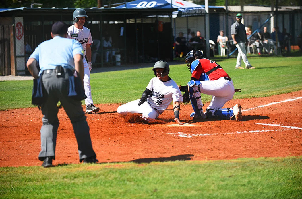 No, danas se karlovačkom napadu zaista u pravom smislu te riječi otvorilo i susret je na kraju potrajao samo četiri i pol izmjene te je prekinut takozvanim “milosrdnim pravilom” (“mercy rule”) zbog prevelike razlike u korist jedne momčadi nakon pet izmjena, odnosno u ovom slučaju samo četiri i pol – nakon što su gosti odradili svoj peti napad.