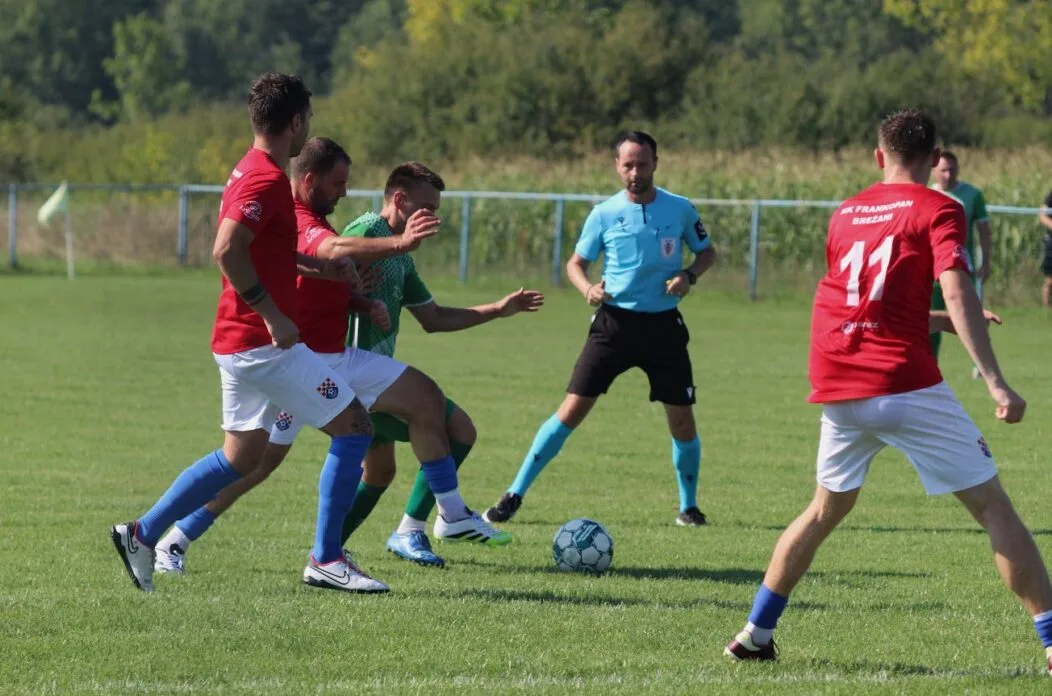 U prvoj polufinalnoj utakmici Vatrogasac iz Gornjeg Mekušja je bio bolji od Frankopana iz Brežana rezultatom 2:1. U strijelce za pobjedničku momčad upisali su se Šako i Filipčić, dok je jedini pogodak za Frankopan postigao Gagula.