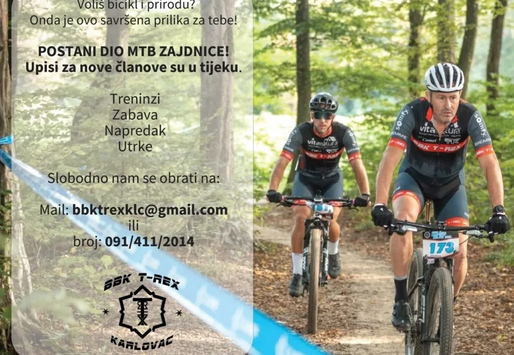 Karlovački Brdsko biciklistički klub T-REX poziva sve zainteresirane na upis u klub za nadolazeću sezonu. Klub aktivno djeluje u području brdskog biciklizma i okuplja djecu, mlade i odrasle – rekreativce i natjecatelje te kontinuirano radi na razvoju sporta, promociji zdravog načina života i sigurnog bavljenja biciklizmom.