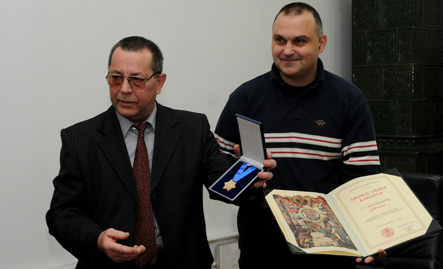 Medalja gradonačelnika grada Karlovca Damira Jelića danas je u njegovom uredu svečano uručena 13. Domobranskoj pukovniji, ratnoj postrojbi koja je u Domovinskom ratu branila grad Karlovac.