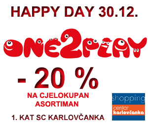 Danas je dan Happy day u trgovini One2play u karlovačkom Shopping centru Karlovčanka. Posjetite nas danas i ostvarite popust od 20% na cjelokupni asortiman iz kojeg posebno izdvajamo najaktualnije igračke za vašu djecu.