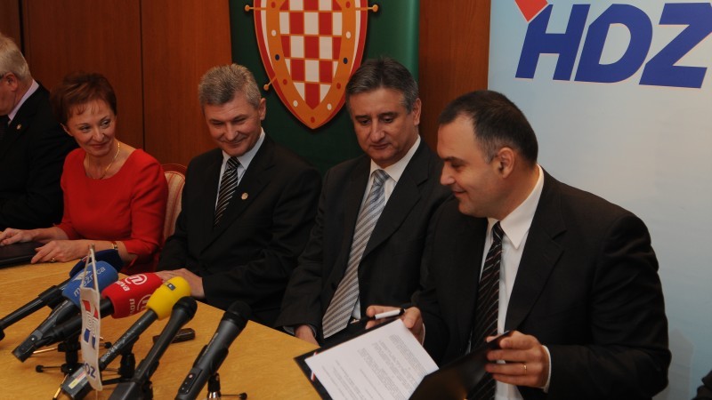U nazočnosti predsjednika HDZ-a Tomislava Karamarka i HSS-a Branka Hrga, čelnici karlovačkih te županijskog ogranka ovih stranaka danas su u Karlovcu potpisali sporazum o političkoj suradnji. Kako je rekao karlovački gradonačelnik koji već 3,5 godine radi u skladnom “koalicijskom braku” s HSS-ovom Marinom Kolaković, ovo je prirodni slijed, potpis koji ima dvostruku snagu. Jedna je, kaže Jelić, dosadašnja suradnjai timski rad pun kompromisa, a druga je ova buduća.