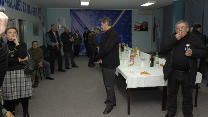 U stožeru HDZ-a na Mažuranićevoj obali atmosfera je, nakon objavljenih rezultata izlaznih anketa, lagano komorna. Zatekli smo samo novinare i nekoliko pripadnika Mladeži HDZ-a dok iz minute u minutu pristižu i lokalni dužnosnici stranke. Zasad nismo uspjeli dobiti nikakav komentar izlaznih anketa, no HDZ-ovcima svaki čas pristižu rezultati s terena iz 7. IJ. Po tim informacijama, rezultati su bolji nego što su HDZ-u davale ankete, čak 15 više nego u izlaznim anketama – oko 55, 56 mandata.