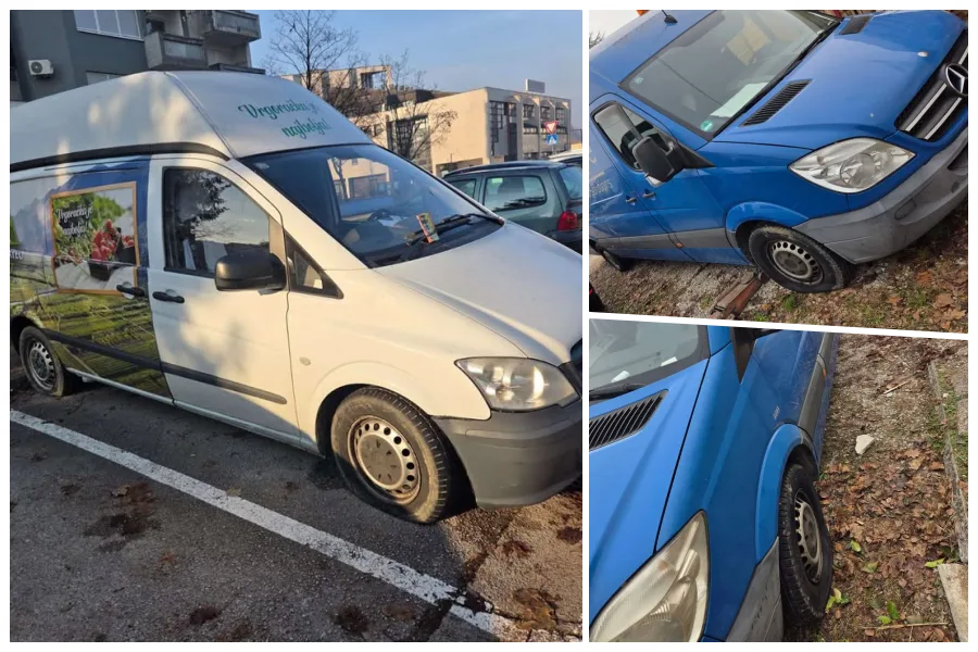 Drugi kombi bio je parkiran kod bolnice Švarča, pored štanda s mandarinama na kojem i radimo. I na tom kombiju probušene su dvije gume.