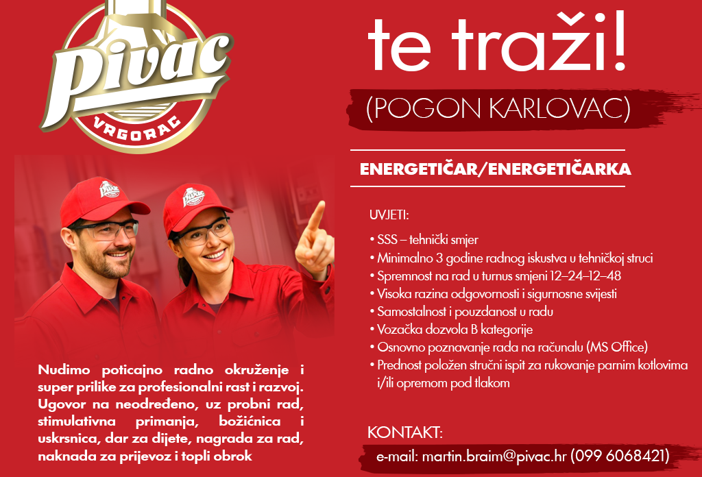 Mesna industrija Braća Pivac traži odgovornu i pouzdanu osobu za radno mjesto energetičara/energetičarke u Poslovnoj jedinici Karlovac.