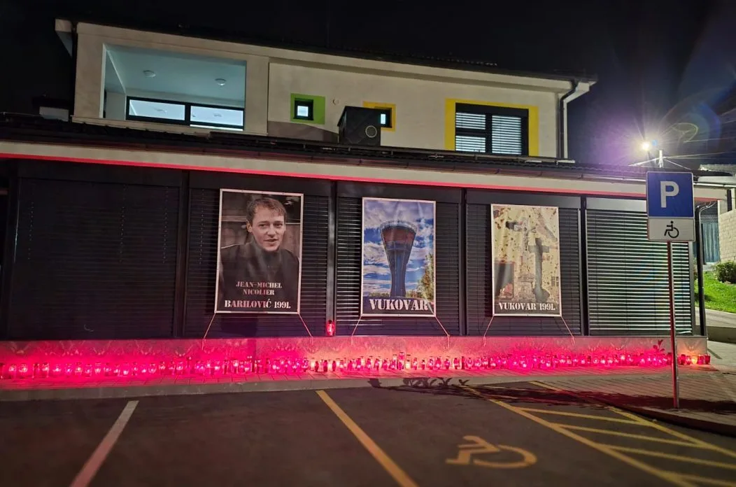 Načelnik Dražen Peraković nam je javio da su zapalili svijeće ispred vrtića u Bariloviću na kojem su izvješeni plakati u čast žrtava Vukovara i Škabrnje, između kojih je i plakat Jean Michela Nicoliera koji je prvih nekoliko dana Domovinskog rata, prije odlaska u Vukovar gdje je i bio ubijen, proveo u Mejaškom Selu.